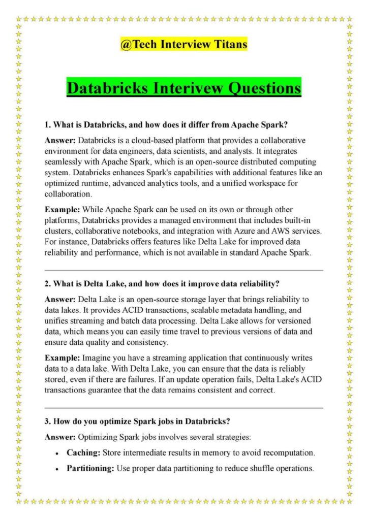 Whether you are transitioning into big data engineering or aiming to level up your Databricks expertise, this PDF equips you with the knowledge and confidence needed to succeed. In a competitive job market, proper preparation is what turns interviews into job offers.