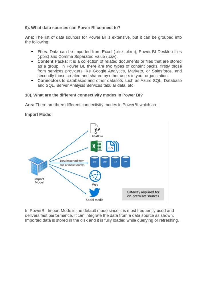 - Data Connectivity: Detailed explanations of the differences between Live Connections, DirectQuery, and Import Mode, including the pros and cons of each.